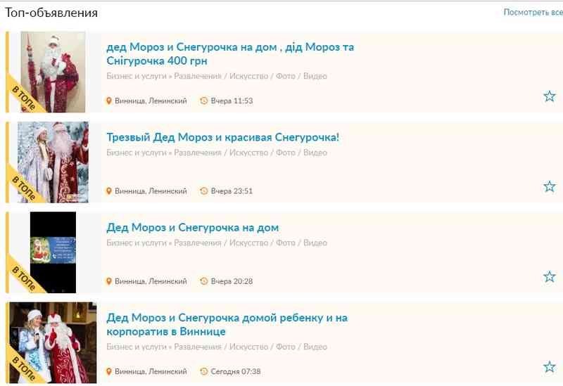 Взрослые винничане шутят, что Деда Мороза в Виннице «декоммунизировали», а детишки расстраиваются. Хотя, наверное, не столько из-за подарков. В принципе, объявлений с предложениями поднять настроение на корпоративе или дома ребенку в Сети достаточно. За 400-1700 грн. Дед Мороз и Снегурка сами станцуют и стишок расскажут малышу у его елочки или родителям на застолье. В некоторых объявлениях, даже уверяют, что новогодние персонажи будут трезвыми. Фотоподтверждения с корпоративов прилагаются.