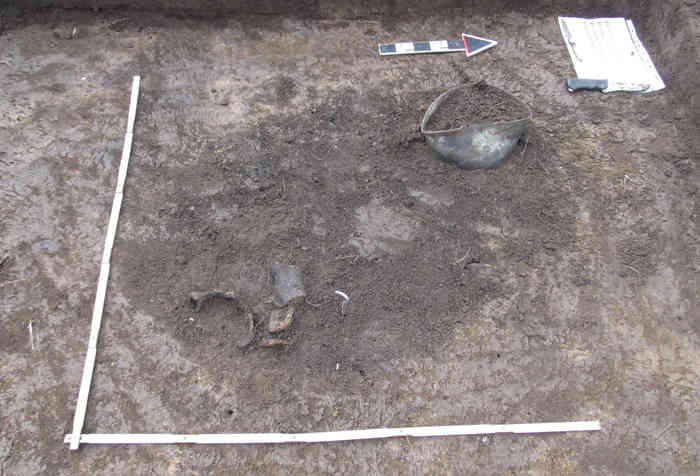 Фото 2. Поховання з бронзовим казанком під час розчисток.