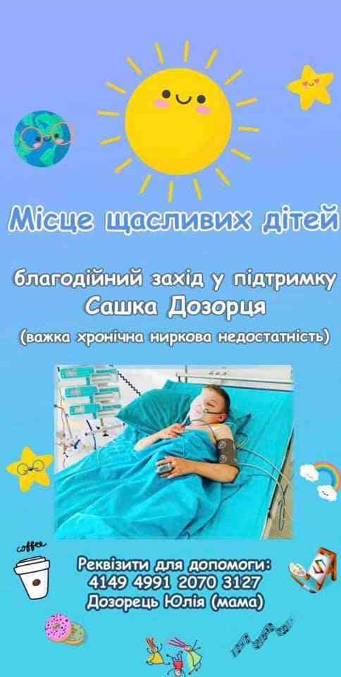 Реквізити для допомоги Сашку: 4149 4991 2070 3127 Дозорець Юля.