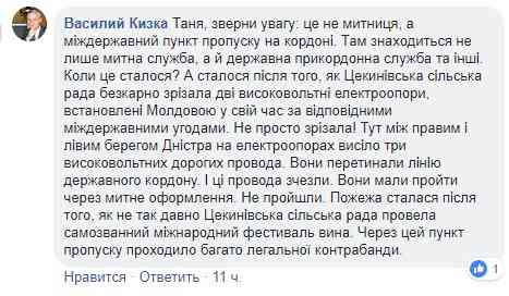 Як пізніше написав про пожежу журналіст Василь Кізка, що це «сталося після того, як Цекинівська сільська рада безкарно зрізала дві високовольтні електроопори, встановлені Молдовою у свій час за відповідними міждержавними угодами. Не просто зрізала! Тут між правим і лівим берегом Дністра на електроопорах висіло три високовольтних дорогих провода. Вони перетинали лінію державного кордону. І ці провода зчезли. Вони мали пройти через митне оформлення. Не пройшли. Пожежа сталася після того, як не так давно Цекинівська сільська рада провела самозванний міжнародний фестиваль вина. Через цей пункт пропуску проходило багато легальної контрабанди».