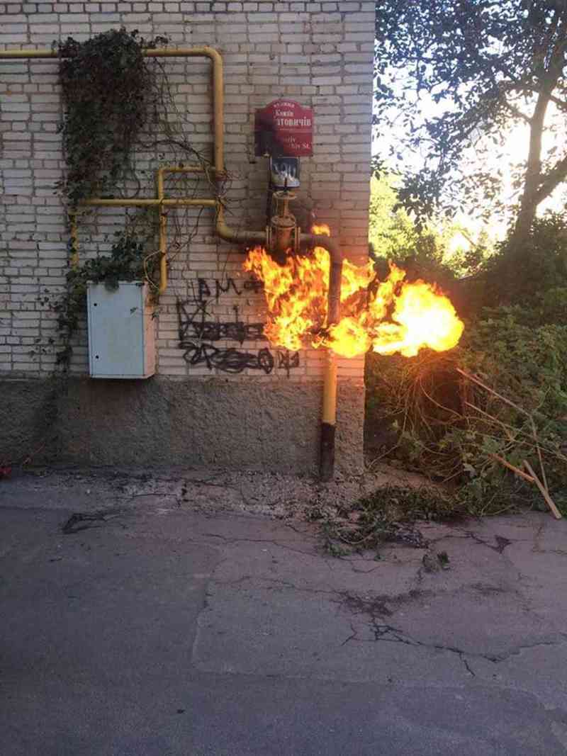 На місце надзвичайної пригоди прибули бійці ДСНС. Вони побачили, що вогонь охопив десь 2 метри газової труби.