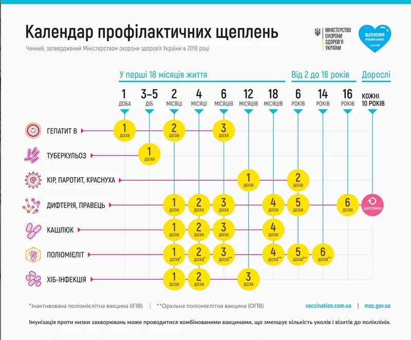 Згідно з календарем щеплень діти до 6 років повинні мати щеплення проти: