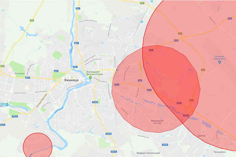 Сайт пропонує карту із зонами, де використання апаратів заборонено. Це доволі великі у радіусі території на східній околиці Вінниці, які включають мікрорайони Малі Хутори, Тяжилів, Олієжир та «Військове містечко» по Шимка й Антонова. Це пов’язано із розташуванням авіазаводу. Також у червону зону потрапив район Сабарова через ГЕС.