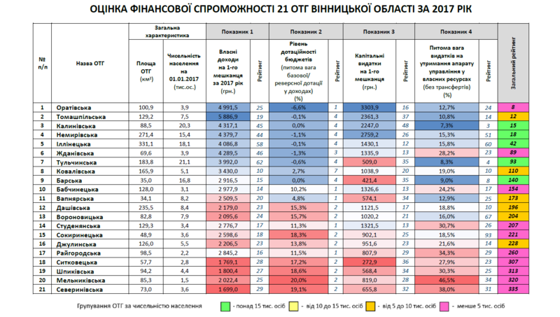 Група фінансового моніторингу Центрального офісу реформ при Мінрегіоні (за підтримки Програми «U-LEAD з Європою» та проекту SKL International) проаналізувала фінансову спроможність 21 об’єднаної громади регіону та зазначила, що протягом 2017-18 років в них спостерігалася тенденція до росту власних доходів ОТГ Вінниччини.