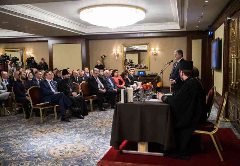 Він також наголосив на важливості участі у процесі отримання Томосу про автокефалію Православної Церкви України держави: «Бо це є державницька справа. Це називається державотворення. Це духовний фундамент нашої незалежності не менш важливий, ніж Акт про державну незалежність 1991 року».