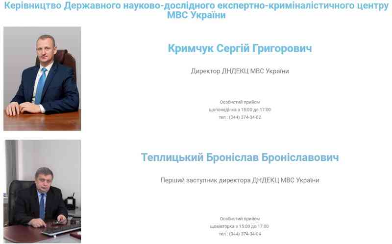 Як зазначається на сайті ДНДКЕЦ, наказом МВС від 21.11.2019 №1120 Кримчук Сергій Григорович призначений директором, а наказом ДНДЕКЦ МВС від 22.11.2019 №117 Теплицький Броніслав Броніславович призначений першим заступником директора Державного науково-дослідного експертно-криміналістичного центру МВС України. До речі, Б. Теплицький цю посаду займав з 2016 року, а певний час навіть очолював установу.