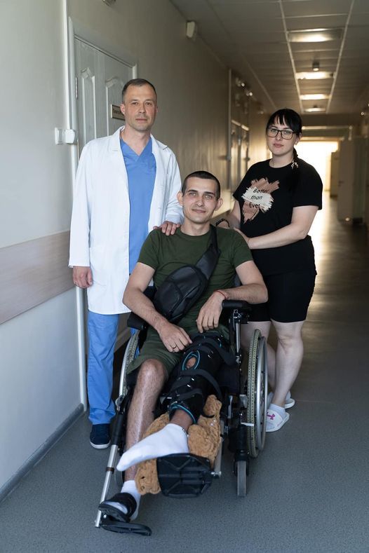 «Далі день за днем, операція за операцією, команда різнопрофільних лікарів справлялися з важкими пораненнями, турбота і догляд медичного персоналу повертали Сергію віру в себе, зʼявлялась надія, що все буде добре. Але самою найціннішою підтримкою для нього є дружина Вікторія, яка завжди поряд, допомагає, стимулює, надихає», - зазначає медик.