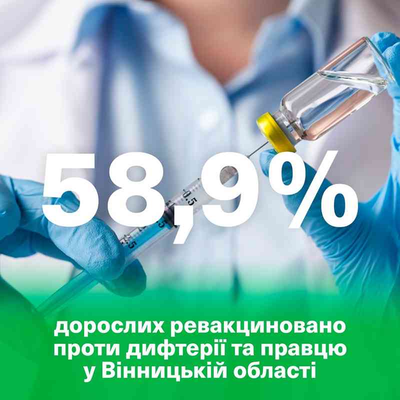 Голова ОДА повідомив, що, за даними медиків, у 2018 році на Вінниччині було вакциновано 53,1% дітей віком 1 рік, 1,5 роки – 66,3% дітей, в 6 років - 79,9% дітей, у віці 16 років - 69,1%. Серед дорослих черговими ревакцинаціями проти дифтерії та правцю охоплено 58,9% населення.