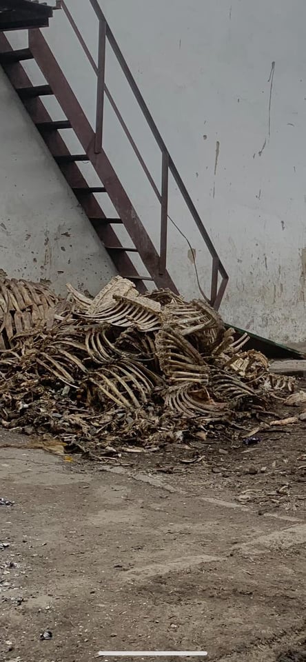 Кадри утилізації «залишків» тварин, які потрапили до редакції, жахають. Те, що не згоріло, викидали у поле за селищем.