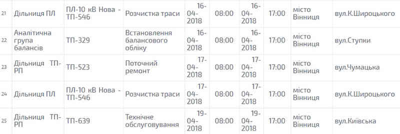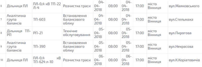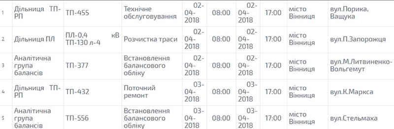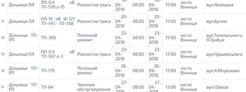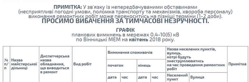 Світло вимикатимуть з 8:00 до 17:00. Графік оприлюднений на сайті ПАТ «Вінницяобленерго». Утім, він може бути змінений – через негоду, поломку транспорту чи хвороби працівників згаданої компанії.