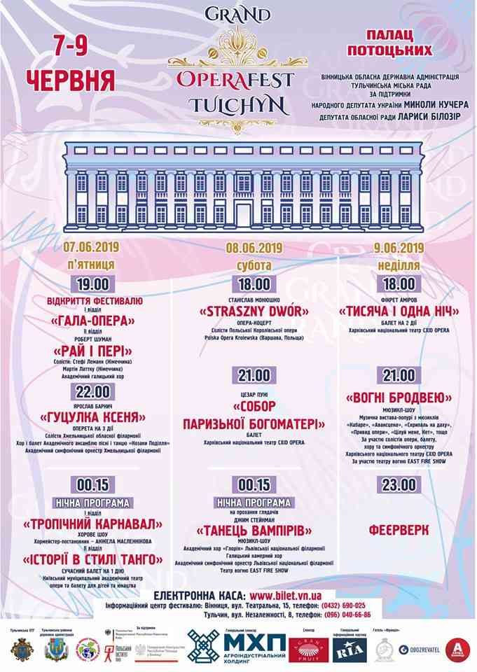 Впродовж 5-ти днів - з 4 по 9 червня на території «Подільського Версалю» - парку Палацу Потоцьких у Тульчині на Вінниччині дивуватиме гостей уже третій міжнародний оперний фестиваль Operafest Tulchyn-2019.