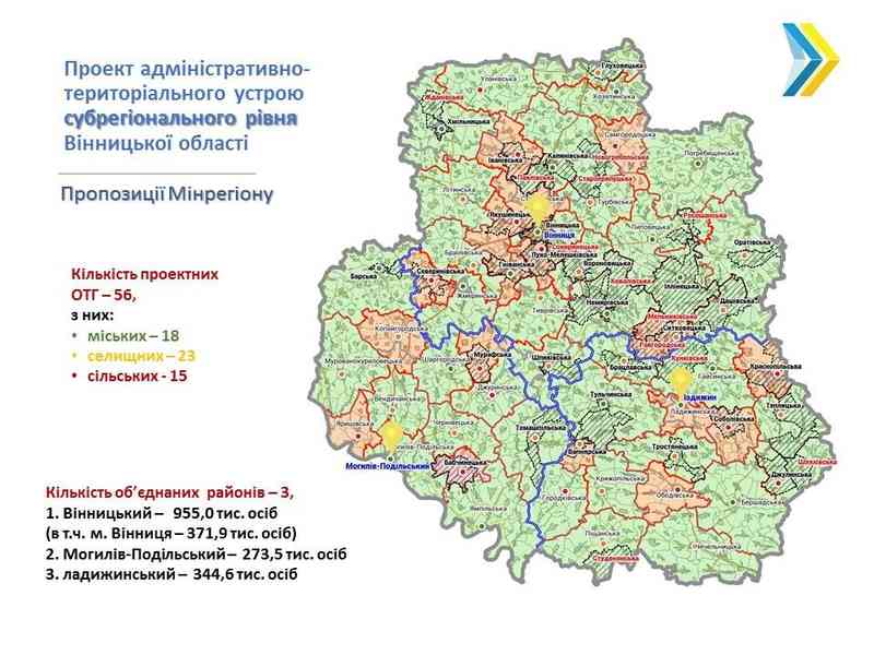 Нагадаємо, за пропозиціями Мінрегіону, передбачалось, що Вінниччину поділять на три райони із центрами у Вінниці, Могилів-Подільському та Ладижині. Проект «ідеальної Вінницької області» у серпні опублікував тодішній віце-прем’єр Геннадій Зубко.