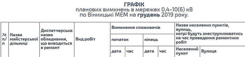 Графік відключень оприлюднений на сайті ПАТ «Вінницяобленерго». Час імовірних відключень залишатиметься таким же, як й у попередні місяці – з 8:00 до 17:00.