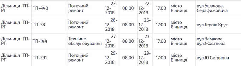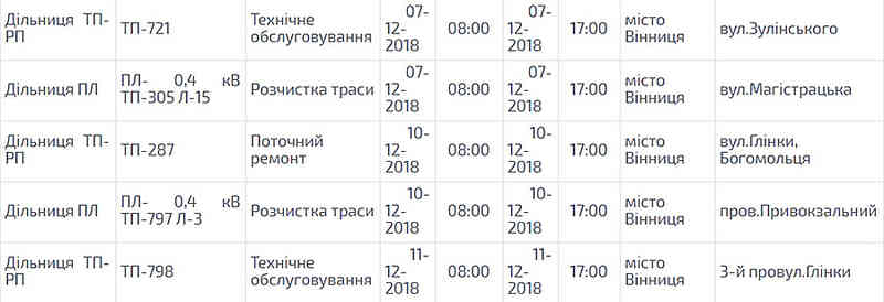 Через планові ремонтні роботи й розчистку електричних ліній у грудні на майже двадцяти вулицях Вінниці тимчасово припинятимуть подавати електроенергію. Про це енергетики, як й у минулі місяці, завчасно попередили вінничан.