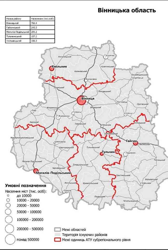 Лише кілька днів тому Вінницька ОДА після численних консультацій та фінального засідання робочої групи відправила до уряду свої пропозиції щодо поділу області на об'єднані райони. На Вінниччині нібито дійшли згоди, що має бути п'ять великих районів: Вінницький, Гайсинський, Тульчинський, Могилів-Подільський та Північний.