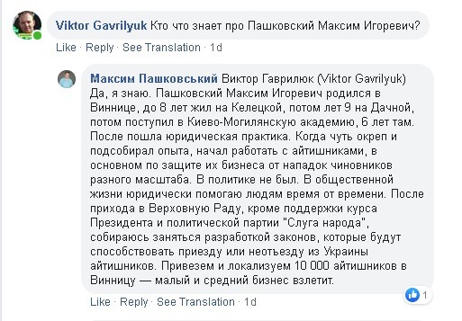 Засновник соціального проекту "Юридична клініка "Швидка юридична допомога". Робить чималий акцент на захисті ІТ-бізнесу, який так любий Володимиру Зеленському. Пашковський вважає, що якщо привезти у Вінницю десять тисяч «айтішників», то місцевий малий і середній бізнес «взлетять». У повітря?