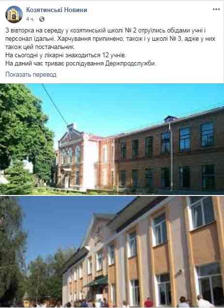 Як повідомили на Facebook-сторінці «Козятинські Новини», 10 та 11 вересня у козятинській школі № 2 отруїлись обідами учні і персонал їдальні. Наразі харчування у даній школі припинено.