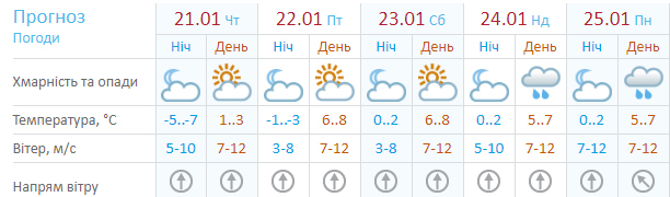 За даними Укргідрометцентру, цієї ночі ще очікується невеличкий мороз (до – 3 градусів), а вдень 22 січня вже буде 6-8 градусів тепла. Такою температура зберігатиметься найближчі дні. Вночі – близько нуля… Між тим, вже з неділі, 24 січня синоптики прогнозують дощі.