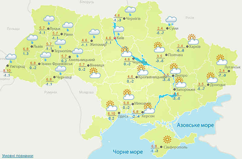 Цей холодний атмосферний фронт насувається в наш край із Польщі. У нашій області можливі дощі, а також і мокрий сніг.