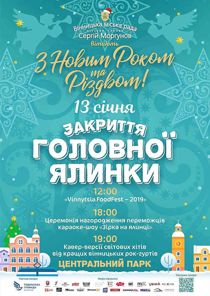 «13 січня з 18:00 зі сцени біля ялинки звучатиме гала-концерт переможців караоке-шоу «Зірка на ялинці». У ньому візьмуть участь 9 учасників. Вони співатимуть пісні, а вінничани голосуватимуть за них грошима. Переможця визначатимуть по найбільшій зібраній сумі коштів. Він отримає цінний подарунок. А о 19:00 відбудеться урочисте закриття Головної ялинки міста. На сцені виступатимуть рок-гурти, зокрема – «НЕ лізь, БО вб'є». Завершиться програма традиційним яскравим фаєр-шоу», – повідомили у мерії Вінниці.