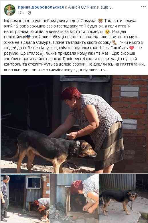 Згодом вінничанка Ірина Добровольська написала в Facebook, що «в останню мить» жінка відмовилася віддавати Самура, «який 12 років захищав свою господарку та її будинок». Пенсіонерка придбала тварині ліки, щоб скоріше загоїлись рани.