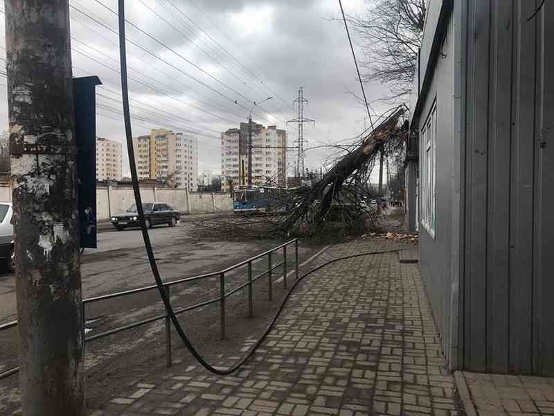 У соцмережах вінничани повідомляють про повелені дерева на вулицях Антонова, Київській, біля лікарні ім.Ющенка.