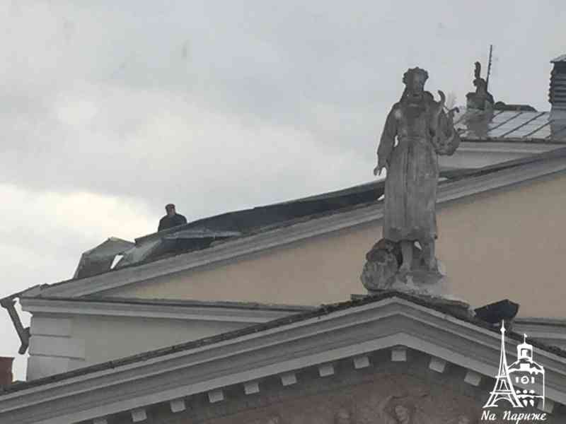 Сильний вітер пошкодив дах обласного музично-драматичного театру імені Садовського.