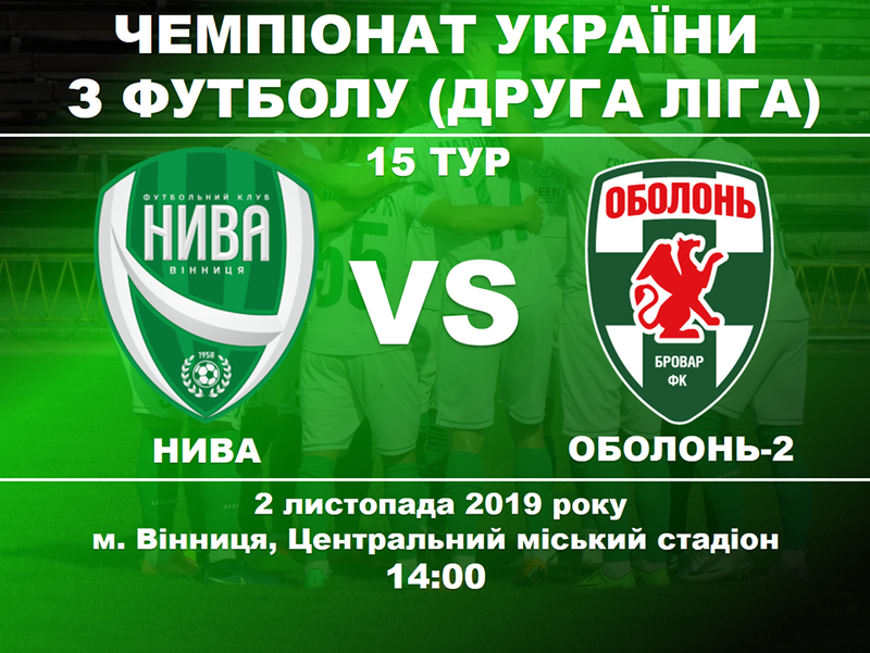 В рамках 20-го туру групи А Другої ліги чемпіонату України з футболу вінницька «Нива» прийматиме столичну «Оболонь Бровар-2». Гра відбудеться у суботу, 2 листопада, на Центральному міському стадіоні.