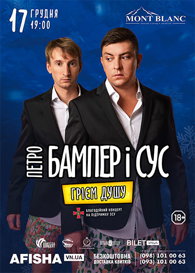 «Бампер і Сус» 17 грудня о 19.00 у концерт-холі «Mont Blanc» чекають всіх вінничан і гостей міста на великому концерті «Грієм душу»!