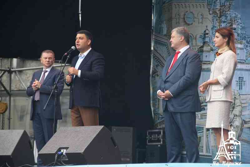 Дощ не став на заваді – Вінниця почала святкувати 655-у річницю з дня заснування. Ховаючись під парасольками, вінничани вийшли відзначати іменини свого міста. Привітати містян приїхали президент України Петро Порошенко і Прем’єр-міністр Володимир Гройсман.
