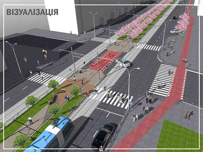 Передбачається встановлення вуличних меблів, облаштування велодоріжок, тротуарної плитки у пішохідній зоні, «острівців» безпеки біля трамвайних зупинок, оновлення газонів та висадження нових дерев.