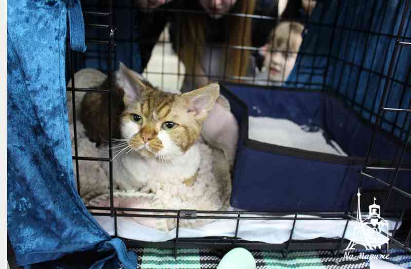 Завітав на виставку з Києва і півторарічний Лаврик, кіт породи орієнтал. Зазвичай вони худі, з довгими вухами, і виглядають досить комічно, однак доброзичливі по відношенню до людей.