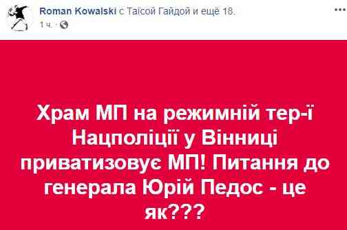 «Храм на території ГУНП у Вінницькій області побудований ще 15 років тому і весь цей час тут проводяться богослужіння для релігійної громади м. Вінниці .