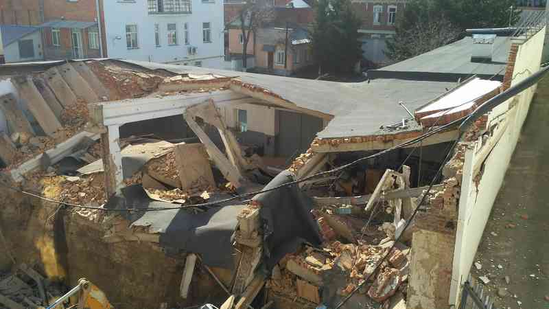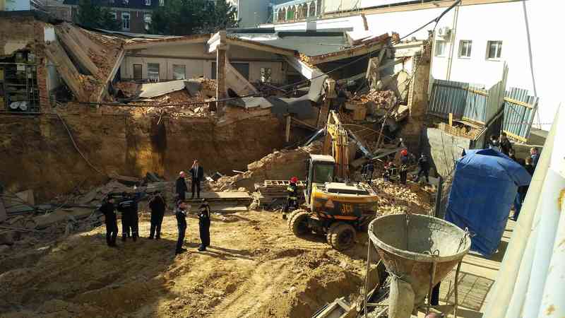 Близько 15.30 на будівельному майданчику біля готелю «Франція» у котлован обвалилася стіна та дах сусіднього об’єкту – гаражів управління Нацбанку у Вінницькій області. Через обвал «під землею» опинилися три чоловіки. Рятувальники дістали їх. Двох постраждалих госпіталізовано у лікарню швидкої допомоги, третій від стаціонару відмовився.