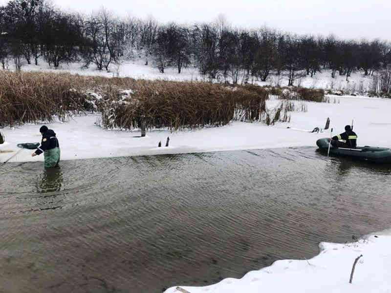 Учора мешканці села Мітлинці в Гайсинському районі побачили, що двоє лебедів потрапили у небезпечну пастку – примерзли до криги на місцевому ставку. Люди звернулися по допомогу до рятувальників.