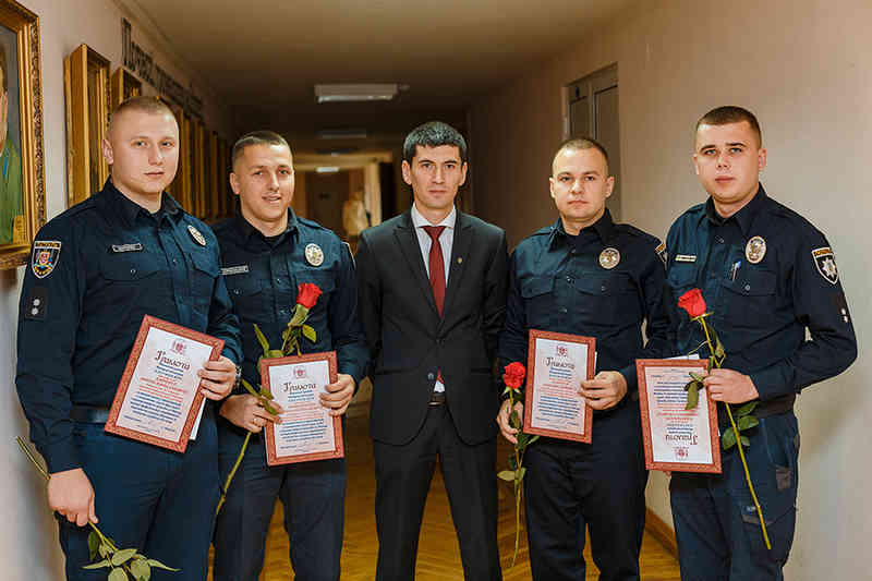 «Грамоти та грошові премії вручили старшому лейтенанту поліції заступнику командира роти №3 батальйону Юрію Осадчуку, лейтенанту поліції інспектору роти №3 Олегу Боржемському, лейтенанту поліції інспектору роти №3 Артуру Карпенку, лейтенанту поліції інспектор роти №3 Олександру Нідзельському», – зазначається на сайті Вінницької міської ради.