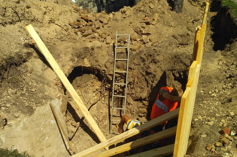 На жаль, дослідити підземні споруди фахівці поки не можуть. Робітники закрили їх дошками, щоб не ушкодити.