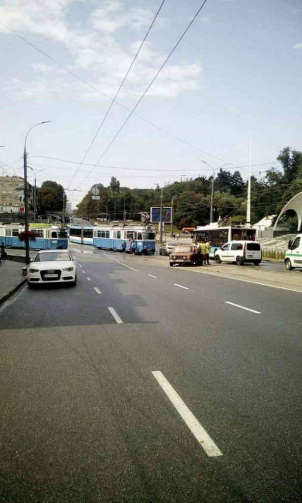 У Вінниці на площі Гагаріна водій ВАЗ чи то не розрахував можливості власного авто, чи просто занадто поспішав, і підрізав трамвай. Через автопригоду рух електротранспорту у місті зупинився на годину.