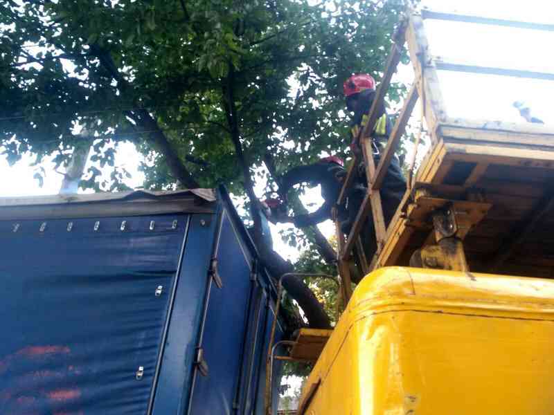 "Прибувши до місця виклику, особовий склад державної пожежно-рятувальної частини № 2 встановили, що дерево впало на тролейбусні лінії електропередач та на вантажний автомобіль. Рятувальники за допомогою спецобладнання розкрижували дерево та прибрали гілля з автошляху", - повідомляють у ГУ ДСНС.