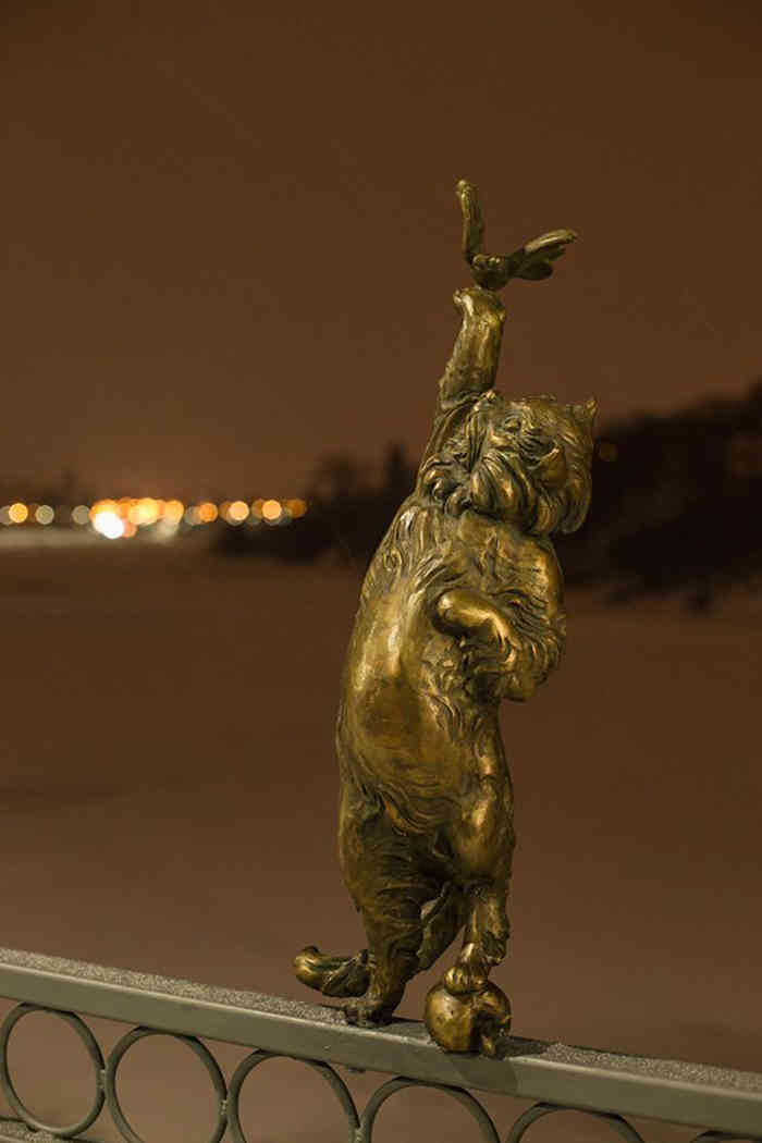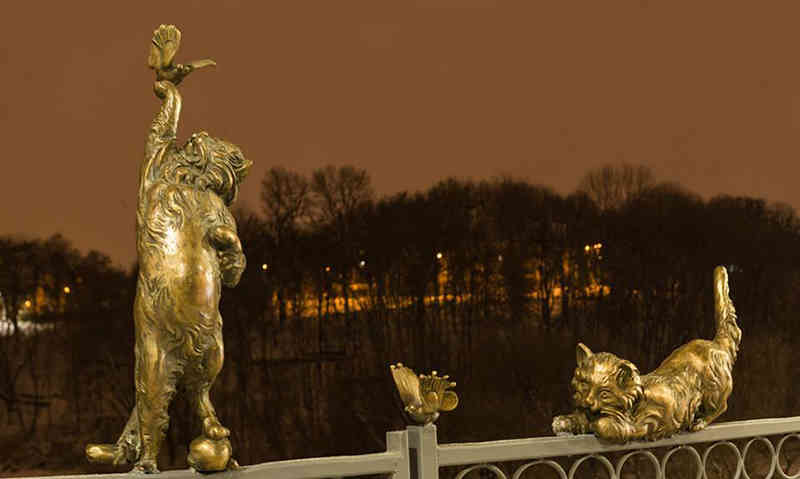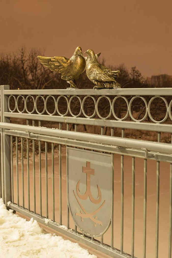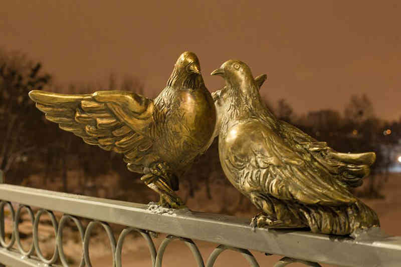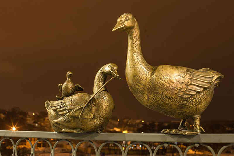 Учора на поручнях нещодавно відремонтованого Київського мосту у Вінниці з'явилися бронзові фігури тварин й птахів – котів, голубів, горобців й гусей.