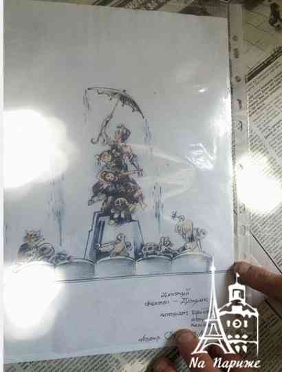 Разом із Сергієм Капустою скульптори вирішили, що поруч із фонтаном, на камінні буде ще і собачка Жулька, яка з двома цуценятами гратиметься м’ячем. Тварини зараз у Києві, їх теж виливають з бронзи.