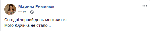 «Сьогодні чорний день мого життя. Мого Юрчика не стало...», - пише дружина у соцмережі.