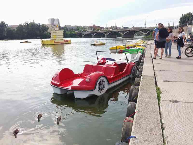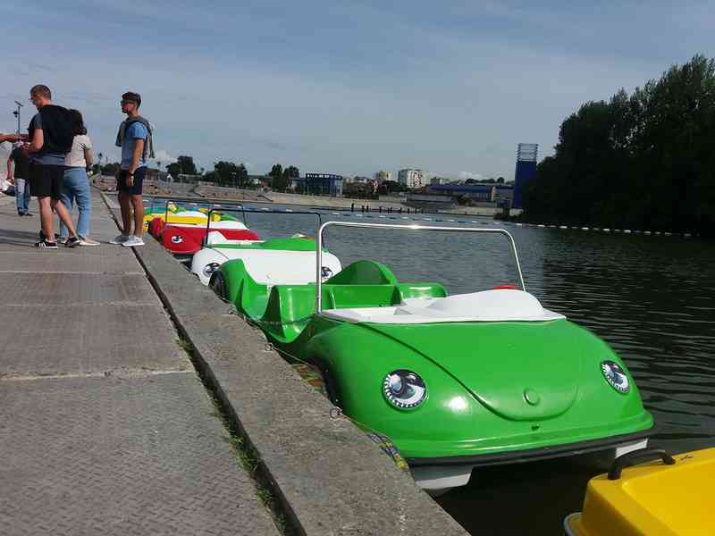 Відтепер гості і мешканці Вінниці катаються на катамаранах-машинах. До гондоли і звичайних катамаранів, які в прокаті на річці Південний Буг, додались ще чотири «машини». Ціна прокату - з особи 40 грн за 30 хвилин.