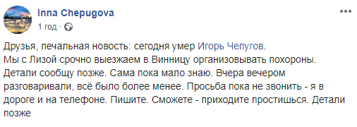 У соцмережах усі, хто знав Ігоря Чепугова публікують співчуття рідним. Друзі наразі влаштовують збір допомоги на поховання Ігоря.