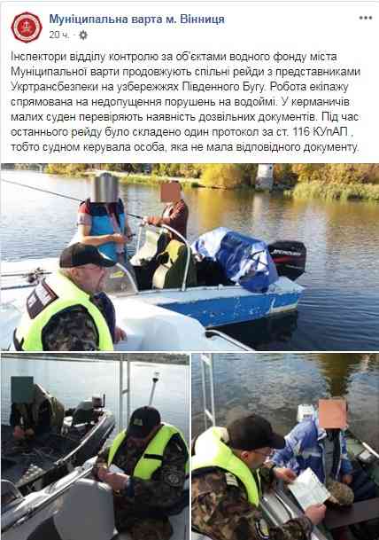 Як повідомили на своїй офіційній сторінці у Фейсбус «Муніципальна варта Вінниці», у місті продовжуються спільні рейди з представниками Укртрансбезпеки на узбережжях Південного Бугу. Робота екіпажу спрямована на недопущення порушень на водоймі.