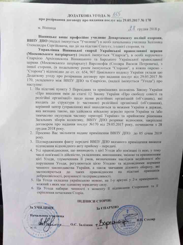 Наслідки були неминучими. Керівник училища Олександр Залізняк став ініціатором розторгнення договірних відносин з єпархією щодо проведення служб у відомчому приміщенні.