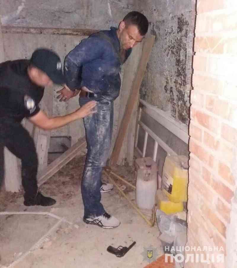 Затриманим виявився 30-річний вінничанин. За версією слідства исник намагався проникнути до споруди, де проводяться ремонтні роботи, шляхом пошкодження серцевини замків на дверях. У чоловіка знайшли слюсарний інструмент, яким можна легко зрізати замки. Також «гість з кущів» мав при собі зброю.