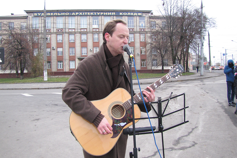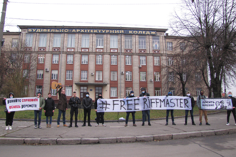Захід #FreeRiff у Вінниці відбувається вже вдруге протягом тижня. Так, 16 грудня близько 15 активістів з плакатами вийшли на площу Героїв Чорнобиля, де виконали пісні рок-виконавця.