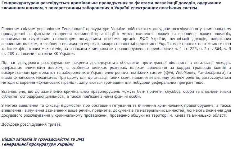 Також на сайті Генпрокуратури опубліковано реліз, у якому не вказується назва компанії, але можна припустити, що мова йде саме про LetyShops