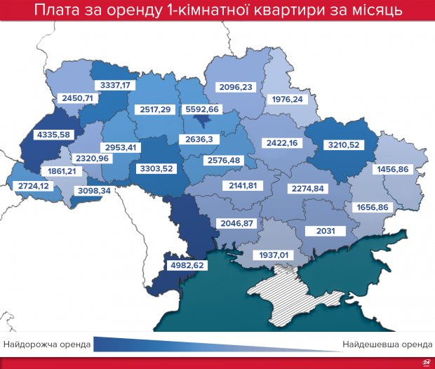 Згідно з інформацією, розміщеною Державною службою статистики, ціна оренди житла у Вінниці знаходиться у такий собі «золотій середині». Найдорожчою є оренда у Києвській області - 7 538 грн та Одеській області (5 429 грн), а найдешевшою у в Івано-Франківській області (2 231 грн), Сумської області (2 118 грн) і Луганській області (2 056 грн).Івано-Франківську, Сумах та Луганську.